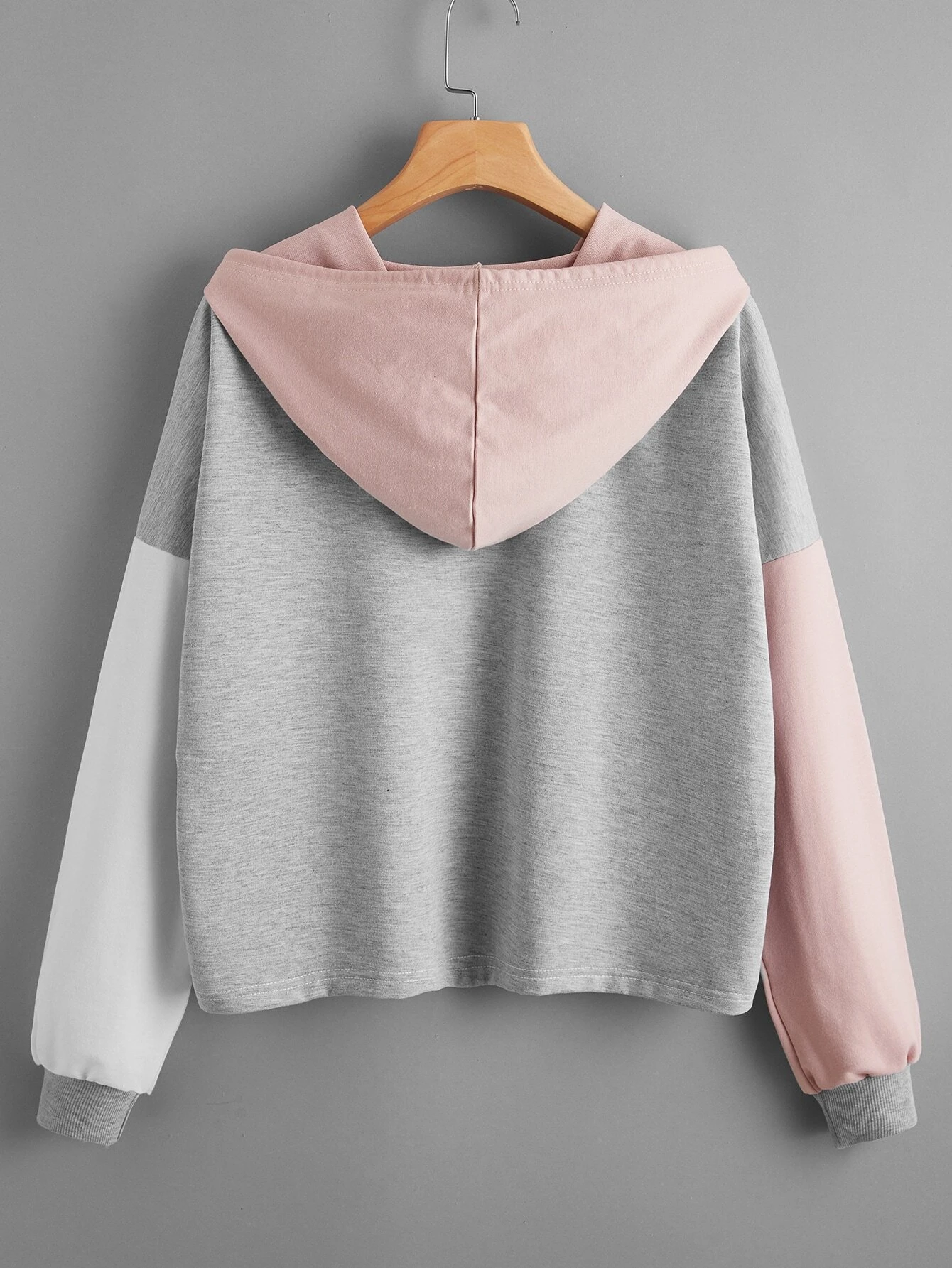 Sudadera con capucha para damas color block con dibujo de alienAlternative view of Sudadera con capucha para damas color block con dibujo de alien