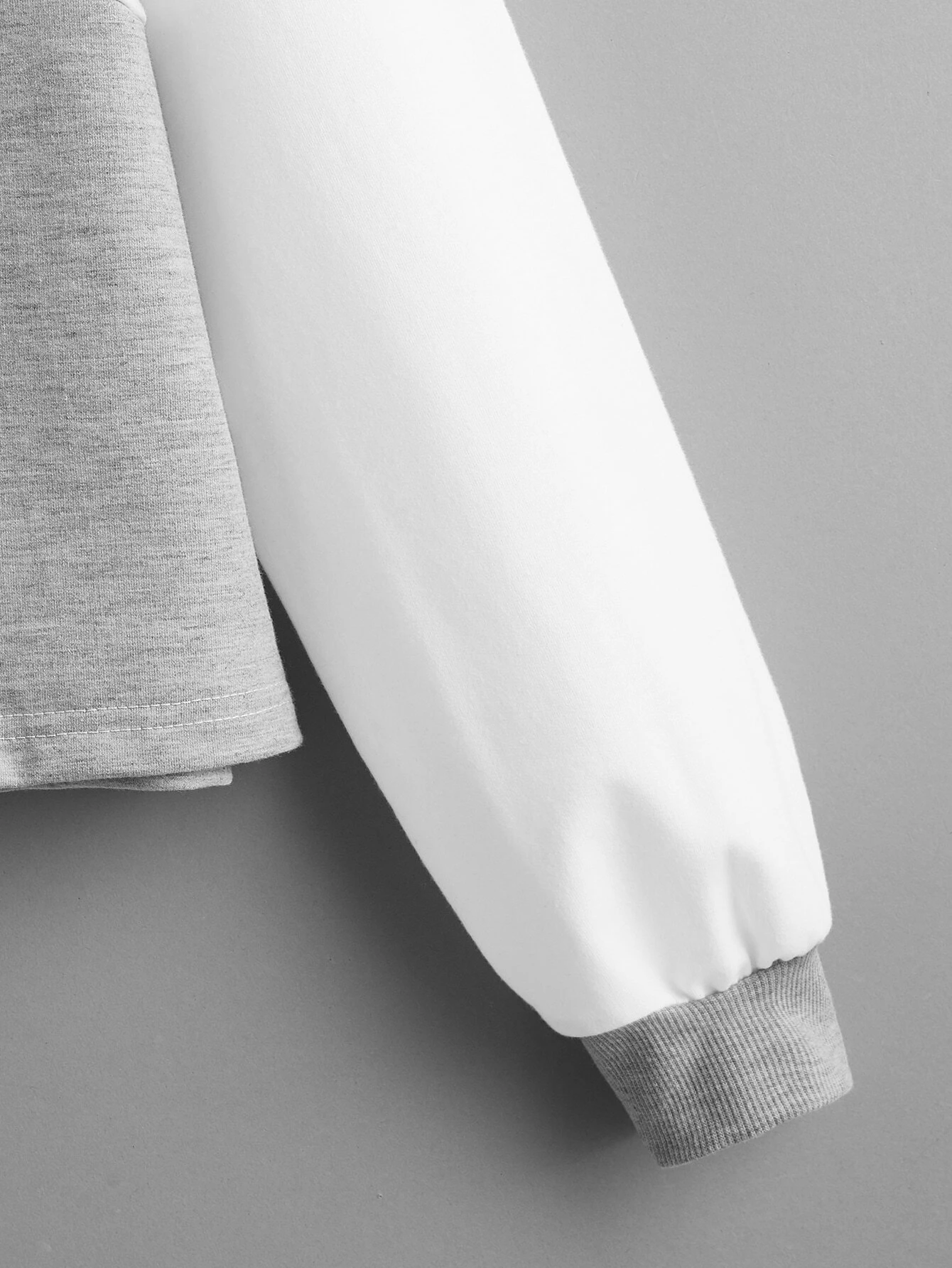 Sudadera oversize unisex combinado plomo, blanco y azul marino