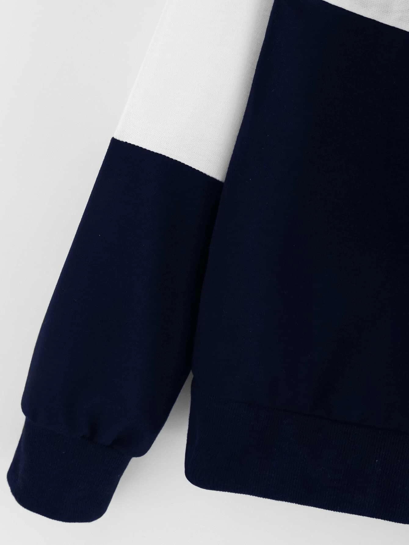 Sudadera oversize unisex combinado plomo, blanco y azul marino